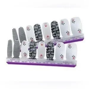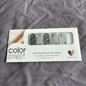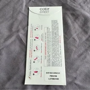 New in package Color Street nail strips. Retired, hard to find “Shop Dead Gorgeous” is a black, red, and silver mix of stripes, gift boxes, and shopping totes.