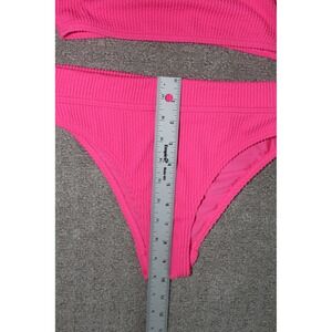 Billabong Neon Pink Smocked Bikini Set Scoop Neck High Cut Two Piece Small