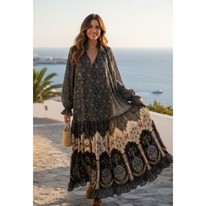 Free People Womens Coastal Vacation Feeling Groovy A-Line Floral Dress Sz M Boho