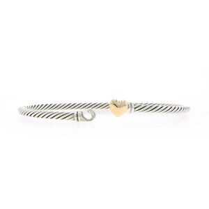 David Yurman Classic Cable Heart Bangle Bracelet 6 1/2" - Sterling 925 Gold 18k