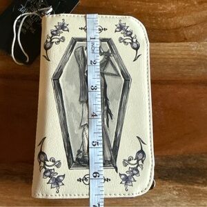 Elegant cream backpack and wallet with black Nightmare Before Christmas design. Ideal for fans, cosplayers, and collectors.