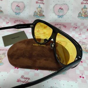 Stylish Tom Ford sunglasses. Black frame with yellow lenses. Perfect for a bold look.