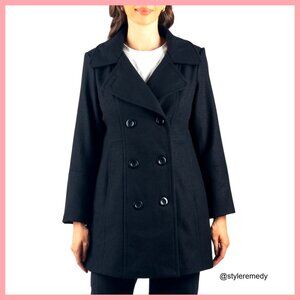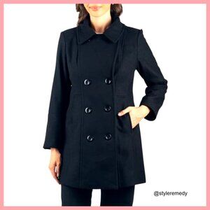 Wool Blend Peacoat Double Breasted Winter Coat A-Line Jacket