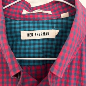 This classic Ben Sherman button down gingham shirt is in excellent preloved condition! Size M 21.5” pit to pit & 29” long Blue and red pattern with turquoise inside Pleated cuffs, front pocket and a nice box pleat in back This is a great looking shirt!