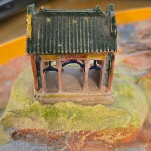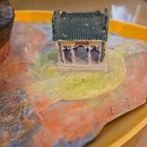 Vintage Chinese Shiwan Mud Man Sage Figurine Driftwood Pagoda Diorama Blue Glaze