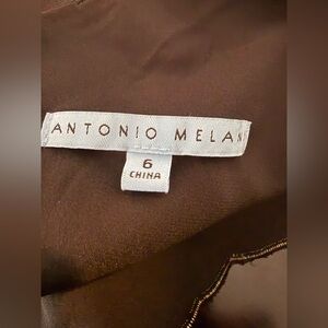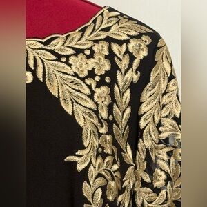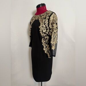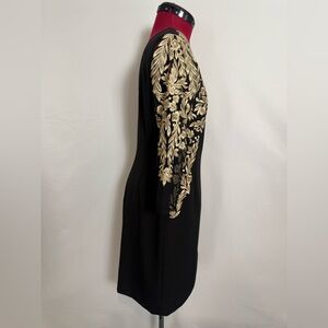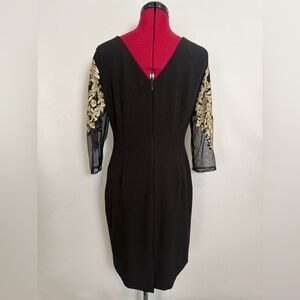 Antonio Melani Sheath Dress Women's Size 6 Black w/Gold Embroidery Sheer Sleeves