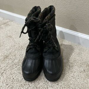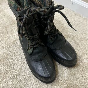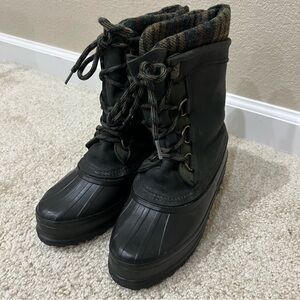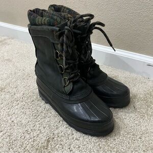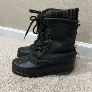 Sorel Women Lace Up Mid Calf Winter Snow Boots Green Plaid Suede Rubber Size 6,