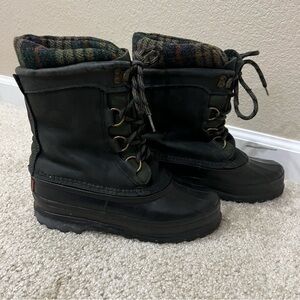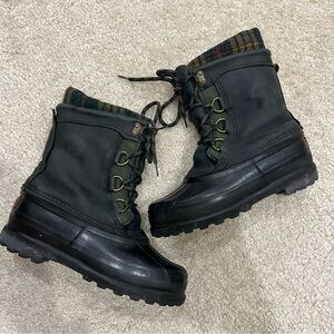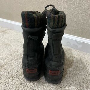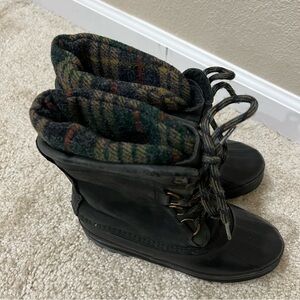 Sorel Women Lace Up Mid Calf Winter Snow Boots Green Plaid Suede Rubber Size 6, Preowned condition, worn on soles, scuffing throughout boots, light wear on leather, pictures provided