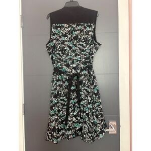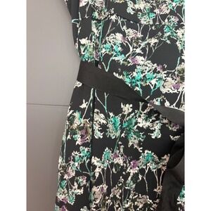 Simply Vera Black Market Floral Fit Flare Dress Black Teal Purple Pockets L