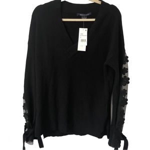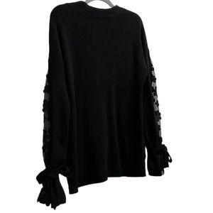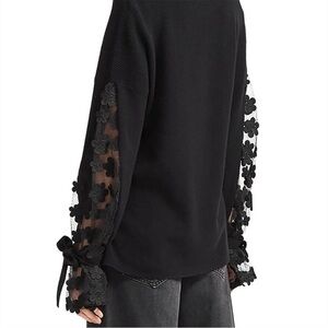 French Connection Caballo floral lace sleeve sweater black knit coquette bow M