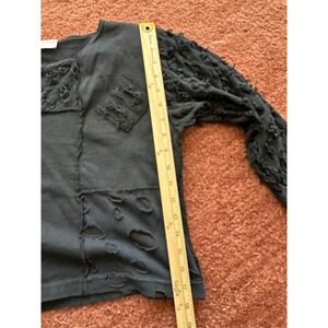Christina Vintage Black 3/4 Sleeve Textured Top Blouse Distressed