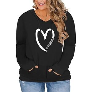 Stay cozy and stylish with this black hoodie featuring a charming heart design. Perfect for casual outings.