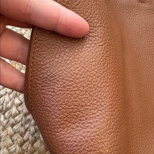 @leatherstylenyc Hi, just the faint stain in the photos as mentioned, otherwise nice. No zipper- it’s the classic easy tote with the double set of straps vs the classic easy zipper with single straps. Let me know if you have any other questions!