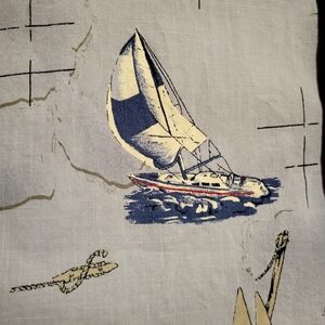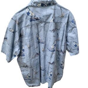 Wolverine Men's Blue Sail Boat Hawaiian Button Down 100% Cotton Shirt Sz XL
