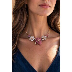 Vintage VCLM Floral Statement Necklace Rhinestone Flower Beaded 16" to 18"