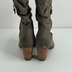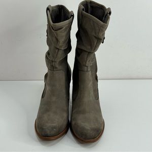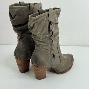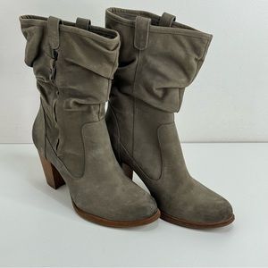 Stylish UGG heeled boots. Soft gray suede. Comfortable fit. Perfect for any occasion.
