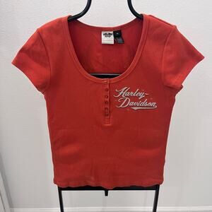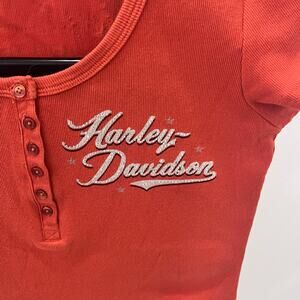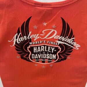 Vintage Harley Davidson women's size XL orange bejeweled wing logo Y2K graphic t-shirt. Pit to pit 17” neck to hem 26”. In excellent condition from a smoke free home.