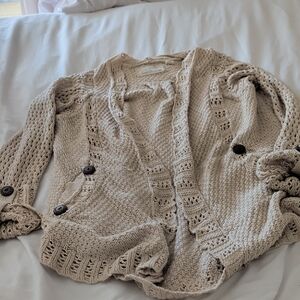 Anthropologie Angel Of The North Beige Knit Cardigan