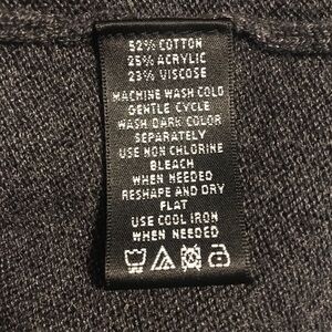 Grey cowl neck lace design on neck and sleeves. Light weight, poly/acrylic/viscose blend. Gently used condition.