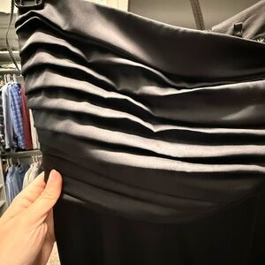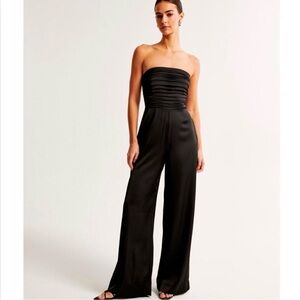 This elegant black strapless jumpsuit is perfect for any occasion. Its sleek design offers a sophisticated look.