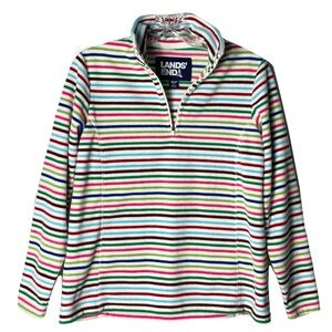 Nwot Lands End Rainbow Stripe Sweatshirt XS Quarter Zip Fleece Winter Comfort