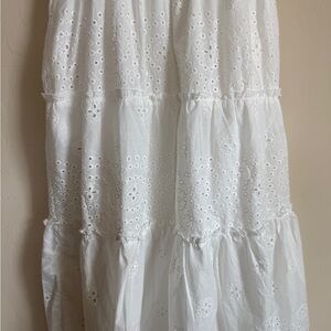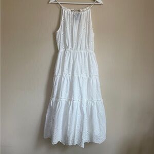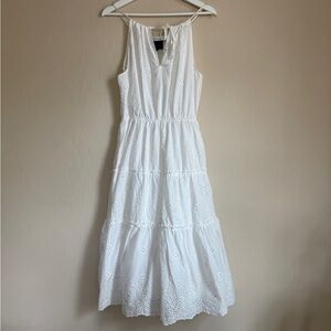 LIV Los Angeles Eyelet White Sleeveless Tiered Maxi Dress