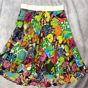VTG Mimi Maternity Patchwork Colorful Whimsy Boho Midi Skirt sz L Phoebe Buffay