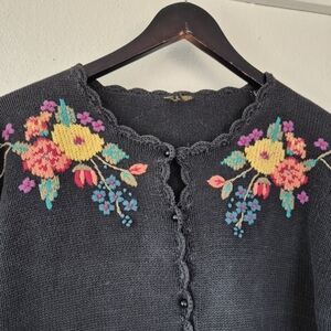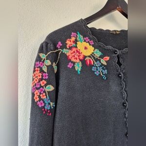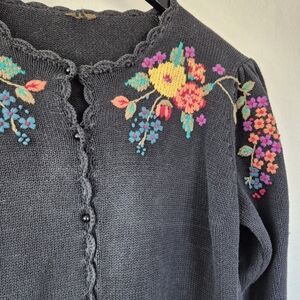 100% Cotton Adorable Cottagecore Vintage Cardigan Embroidered Flowers Medium
