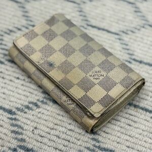 LOUIS VUITTON Vintage Leather Damier Azur Port Monnaie Billets Tresor Wallet
