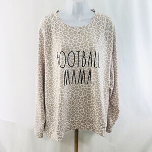 NWT RAE DUNN Womens FOOTBALL MAMA Sweatshirt Top Leopard Print Plus Size 2X.