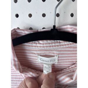 Garnet Hill Button Down Striped Oxford Shirt Pink White Women's 04 Sm Org Cotton