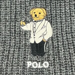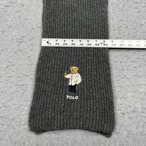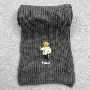 Polo Ralph Lauren Scarf Mens OS Gray Fancy Martini Bear Wool Cotton Knit Ribbed