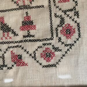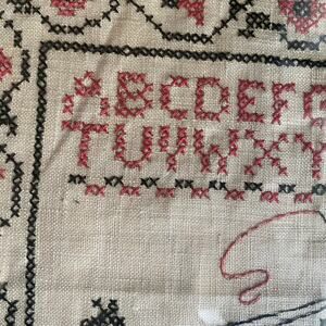 Framed Cross Stitch Embroidered Sampler in Red & Black