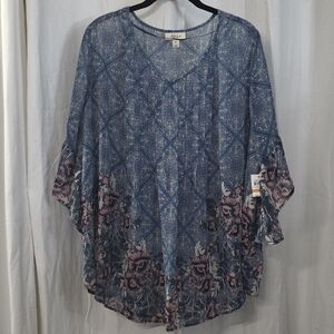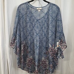 0x 1x 2x 3x Style Co Georgette Pintuck Pink Blue Bell Sleeve Boho Babydoll Top