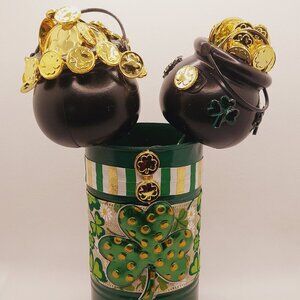 Gold, Black & Green Pot of Gold Pens and Holder (StPat4)