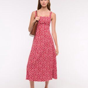 Abercrombie The A&F Mila Stretch Midi Dress Small Red Pattern