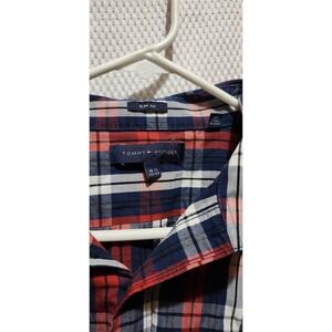 Tommy Hilfiger Men's Plaid Long Sleeve Shirt Size 16 1/2 x 33 M R/W/B slim fit