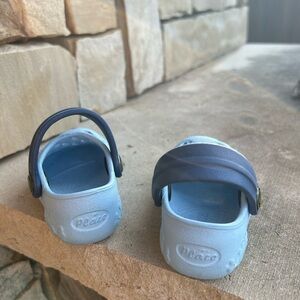 Clogs in light blue from The Children’s Place. Waterproof rubber unisex comfortable & lightweight shoes. Sz-6-12 months. Pre owned in great condition.