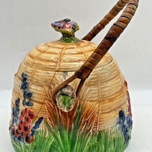 Vintage Royal Winton Grimwades Bee Hive Biscuit Barrel 1930's Bamboo Handle