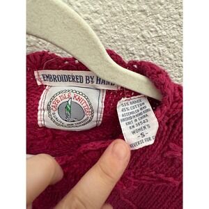 Cape Isle Knitters Hand Embroidered Floral 3D Knit Sweater Womens Small Pink VTG