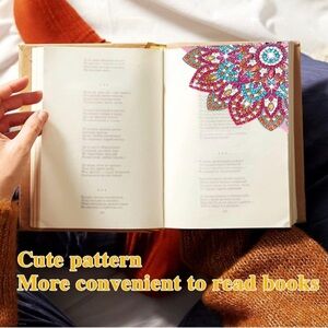 Diamond Art Lotus Flower Corner Bookmark, Colorful, Sparkly (GREEN/ORANGE)