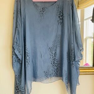 Tempo Paris Gorgeous Hand Dyed Blue Shade Silk Blend Poncho Style Top Lg