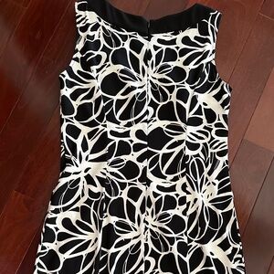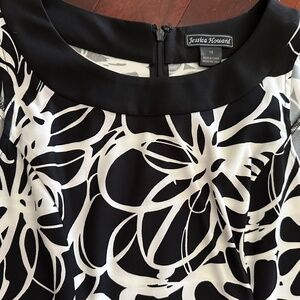 Classic and elegant Jessica Howard sleeveless Black White Midi pattern dress.