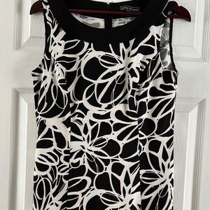 Jessica Howard Women's Black White Pattern Invisible Back Zipper Midi Sleeveless Dress Size 10P NWOT
