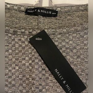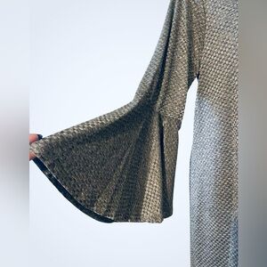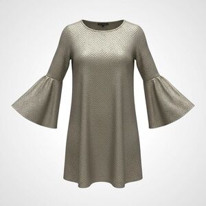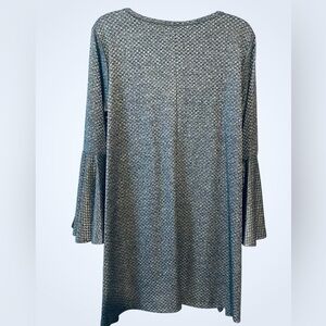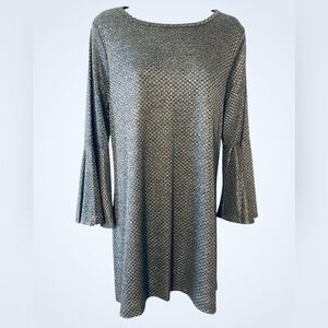 Textured Silver Grey Metallic Mini Dress / Tunic Top Bell Sleeves NWT S