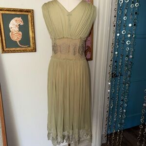 vintage y2k deadstock green silk dress!