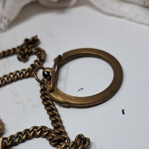 Rich aged patina throughout adds authentic vintage character. The chain shows natural wear consistent with age, including light oxidation typical of brass or gold tone metal. The bill clip mechanism appears intact and holds tension.