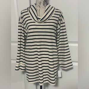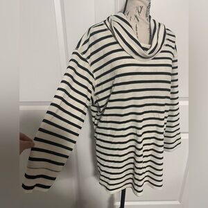Hearts of Palm Cream and Black Striped Cowl Neck Sweater