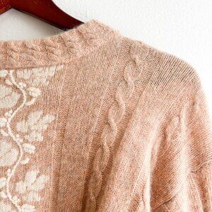 Vintage Liz Claiborne Collection Angora Wool Sweater – Soft Blush Floral Cable Knit