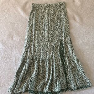 Green floral midi skirt with side slit